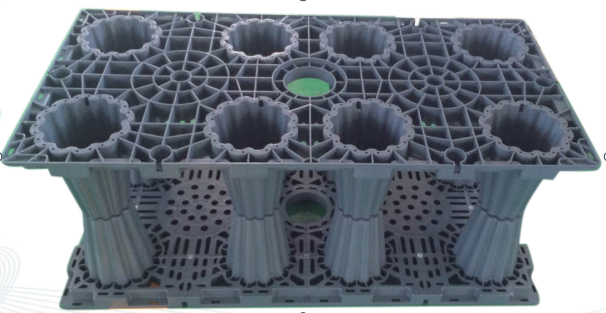 塑料模塊組合水池由多個 PP 模塊單體組合 ,在建築工地現場拚合成整體,並通過包裹防滲材料,形成地下蓄水池。單體模塊采用 PP 材料注塑而成,根據收集的雨水量和用戶的需求,組合成不同形狀和不同體積,並可根據使用場合承載力不同,選擇不同結構形式、 不同承載強度的塑料模塊。 PP 組合模塊水池施工快捷、 布局靈活、 抗老化、 防藻類滋生、 抗震性能好、 不會滲漏、 可拆卸異地重建等優點, 並可配合雨水滲排一體化係統、 路麵滲水板產品使用,取代透水磚及硬化路麵,能夠改善路麵積水、 緩解城市內澇。